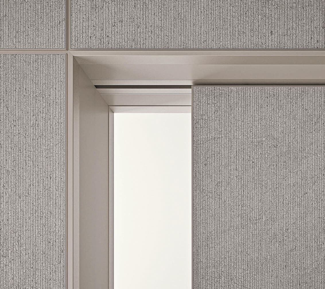 What makes Modulor compelling is the way material choice can be carried through the same architectural set-out. A controlled palette of finishes, including timber veneer, lacquered glass, fabric-effect panels and porcelain, can be specified to match the surrounding material story so the wall plane holds continuity across doors, floors and cabinetry.