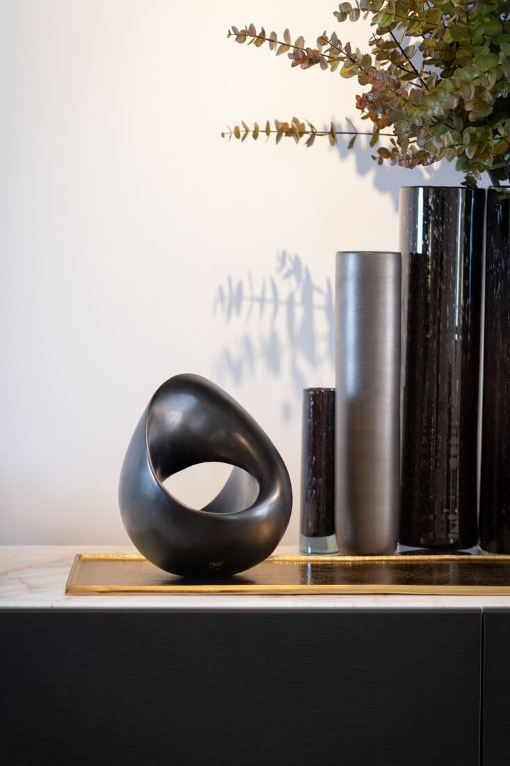 Sculptures, vessels, and wall pieces are selected for proportion and surface quality, then positioned to support the way the space is read day to day. The aim is always the same: a home that feels complete and composed, with objects that add meaning through restraint and placement.
