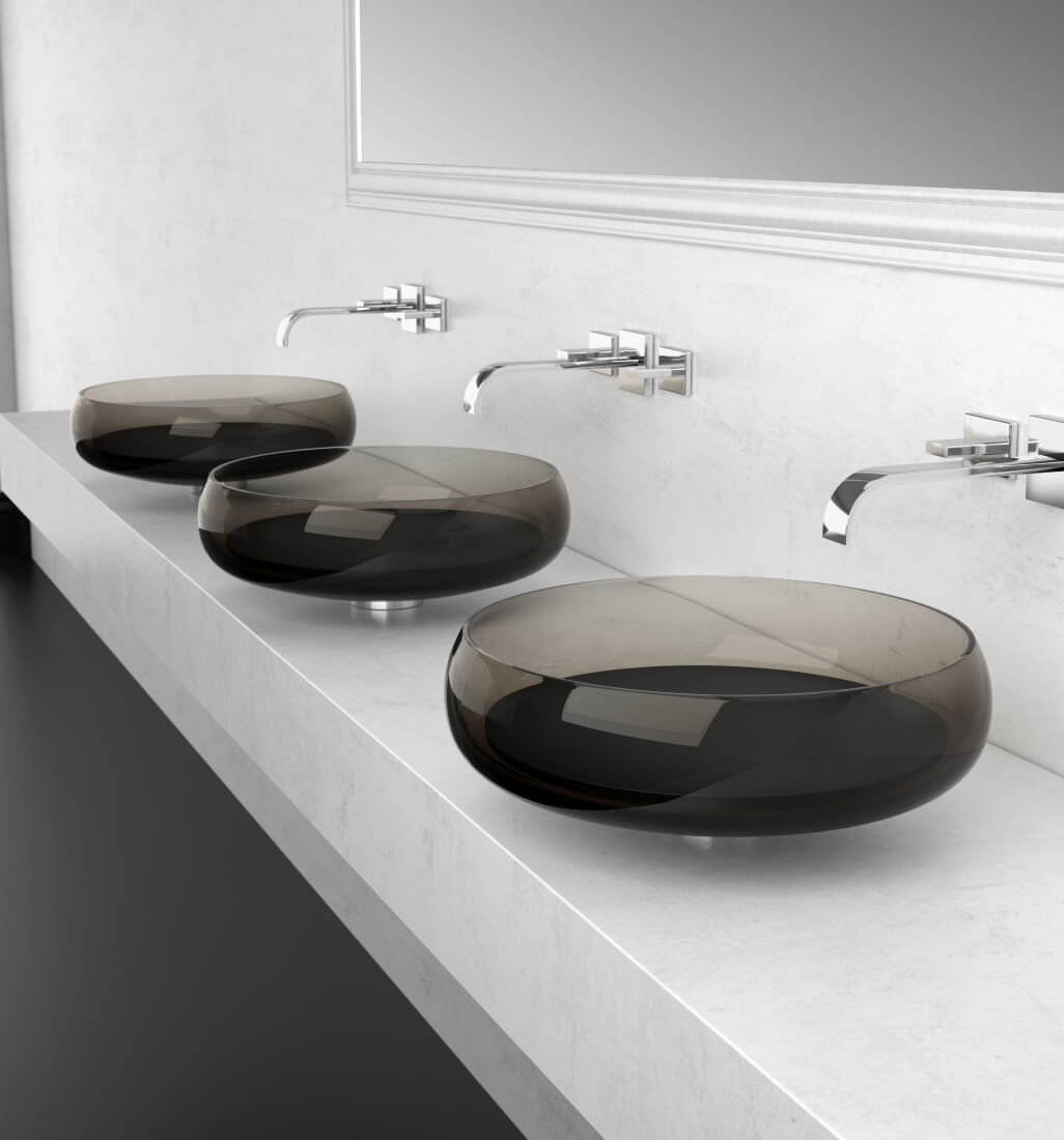 Glass Design is an Italian basin specialist suited to bathrooms where the basin is treated as a focal touchpoint—scale, set-outs, and finishes resolved as part of the wider interior architecture.