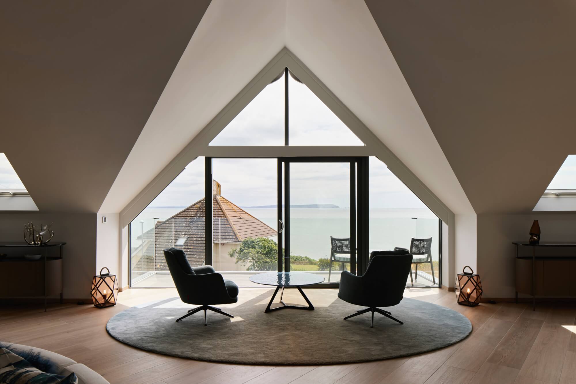 A Dorset clifftop apartment transformation that combined two separate residences into one coherent home at Friars Cliff. Dream Design developed the complete home design, with spatial planning, structural reconfiguration, and interior specification resolved in parallel so the layout supports modern living and the coastal setting.
