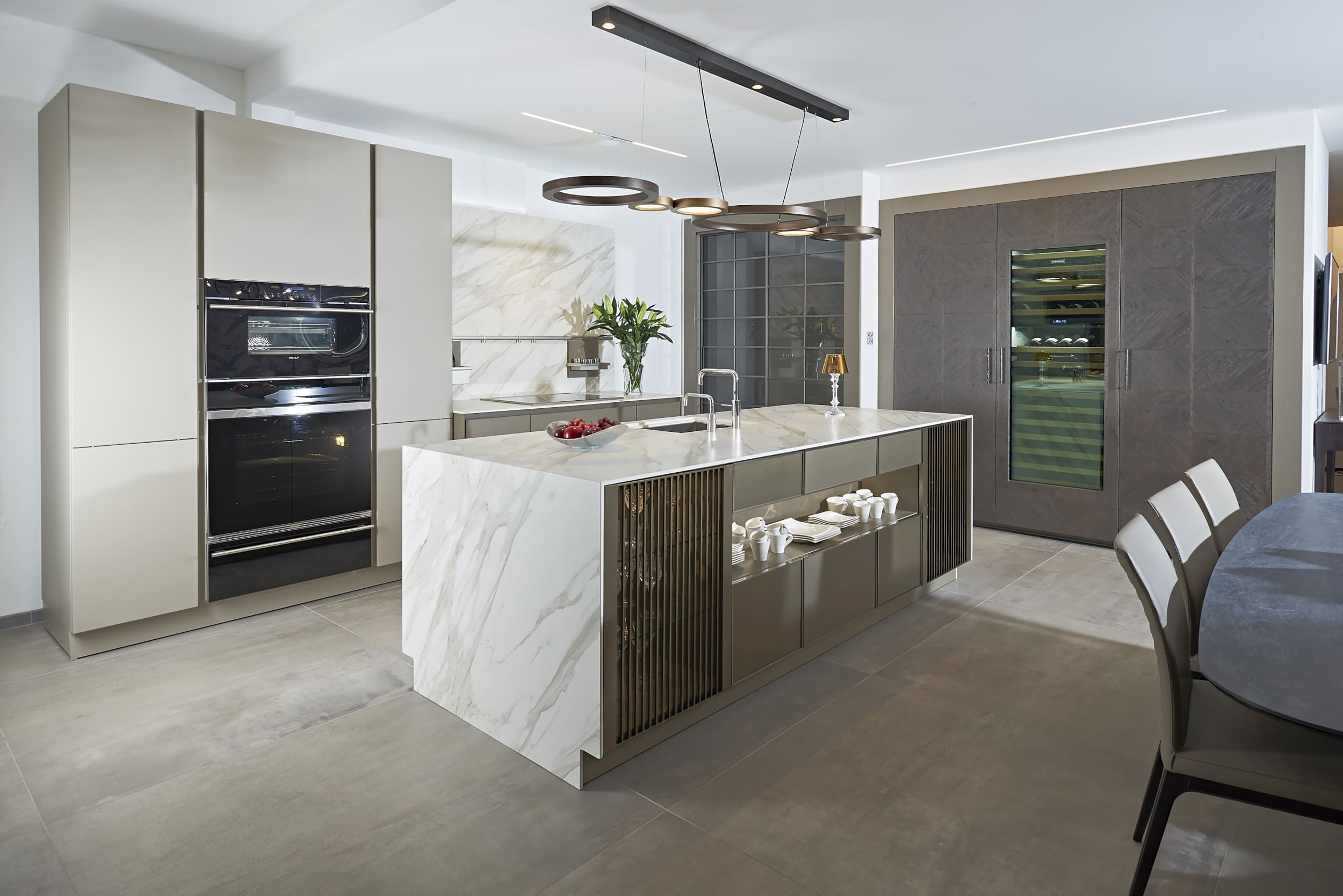 The Dream Design showroom is set out as a sequence of full-scale rooms, showing interior architecture as it is lived. Kitchens, bathrooms, bedrooms, and living spaces are planned in context, with lighting, storage, and detailing integrated into the wider composition.